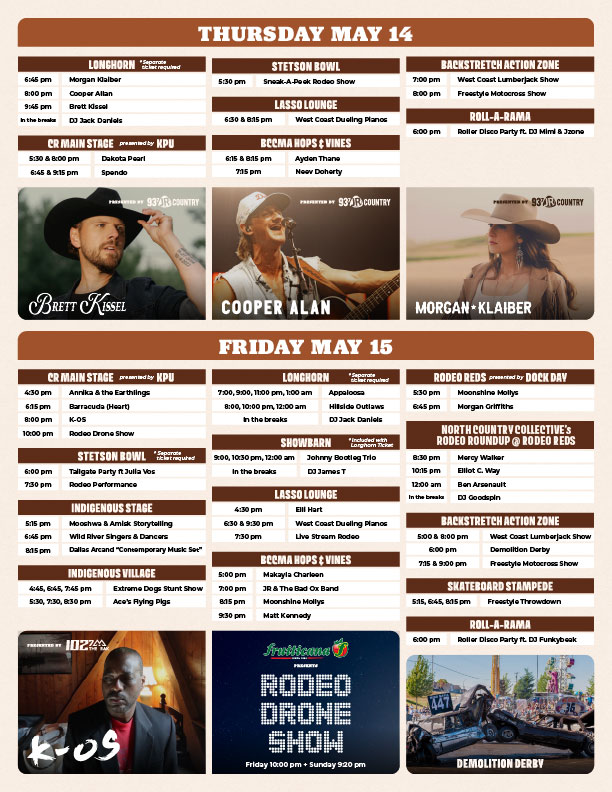 For the first time since 2008, the Cloverdale Rodeo and Country Fair is kicking off one day early, on Thursday, May 14, 2026, giving fans exclusive early access to the country fair and a must-see live concert that sets the tone for the entire weekend.