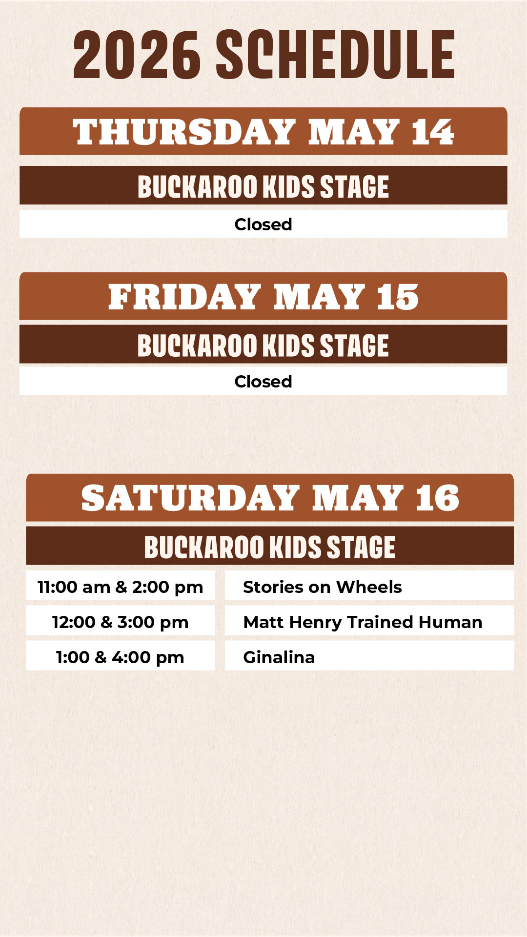 Buckaroo Kids Corral Schedule