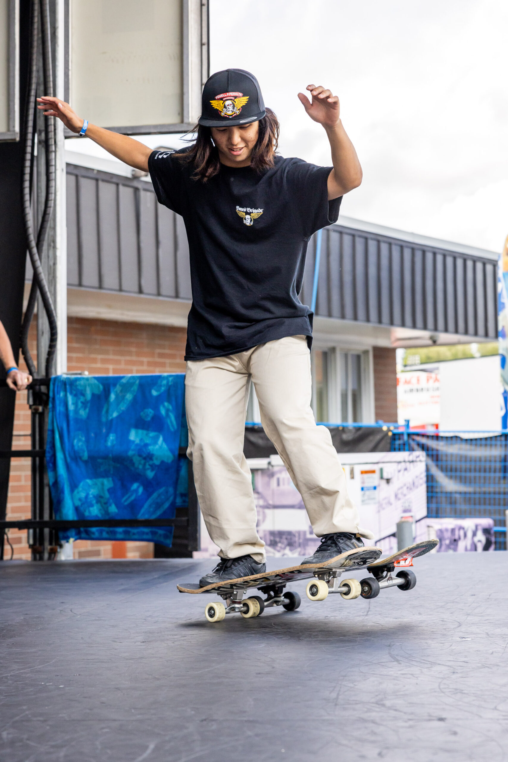 Cheyenne Williams is a competitive freestyle skateboarder from Hope, BC. She started skateboarding at 30 years old after she began bringing her daughter to HMI Skate Park for lessons 3 years ago. Since then, Cheyenne has travelled around North America to attend freestyle skateboarding competitions, most recently placing first in the Amateur Division at the 2026 Kona Classic in Jacksonville, Florida. When not skateboarding, Cheyenne works full-time as a registered nurse and is a mother to three kids.